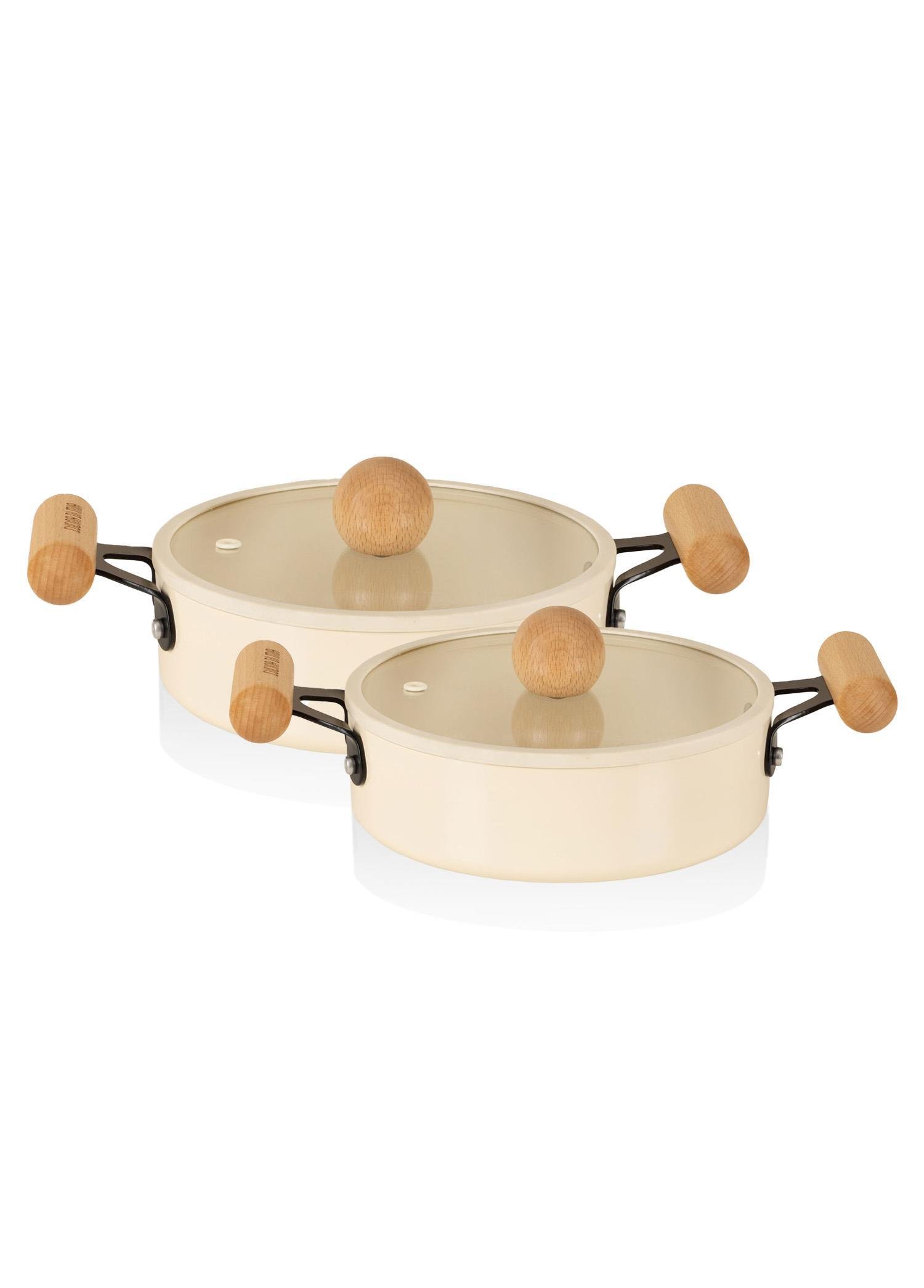 Üretim aşamasında yüksek sıcaklıklarda pişirilen seramik kaplama, tencere ve tavalara dayanıklı ve pürüzsüz bir yüzey sağlar.