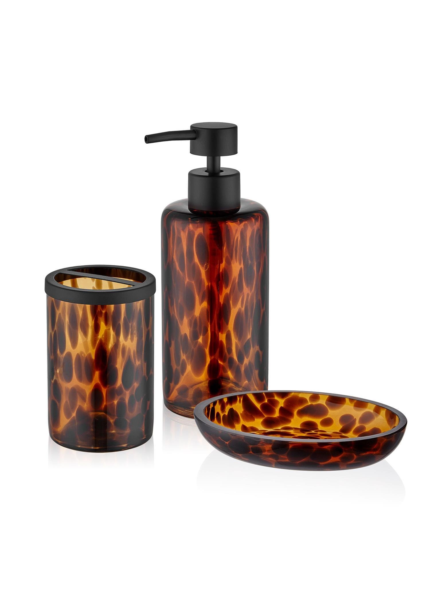 Ürün 3 parçadan oluşmaktadır.Sıvı sabunlukKalıp SabunlukDiş FırçalıkCam malzemeden üretilmiştir.Banyonuzda dekoratif bir görüntü oluşturucak modern tasarımlı banyo aksesuarlarıdır.